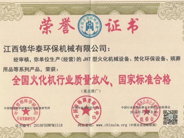 • 全國火化行業質量放心合格
